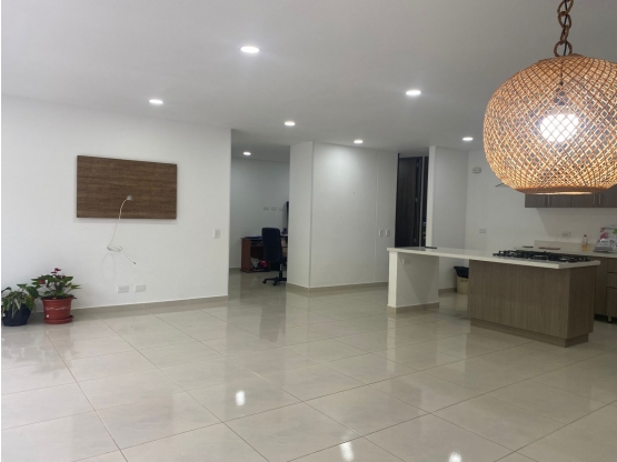La sala-comedor es abierta, amplia y luminosa. A la derecha de la sala, un pasillo que conecta con las tres habitaciones, una zona de estudio y un baño completo.