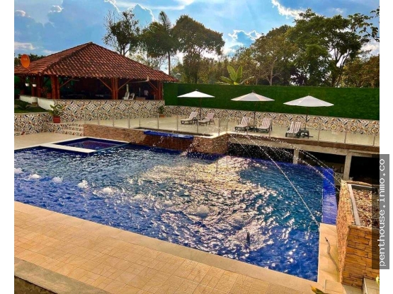 area del terreno 5.000 Mt2 , área para cultivo, consta de 7 habitaciones amplias con baño privado, y una de las habitaciones tiene Jacuzzi, cocina integral, piscina amplia y con Jacuzzi dentro de la piscina, la piscina tiene calefacción, hermosa chimenea, al lado de la piscina hay una terraza para realizar eventos sociales, baño turco con ducha exterior, cuenta con una cancha de mini fútbol con iluminación , tiene un kiosko, funciona una cocina moderna y una estufa típicas.